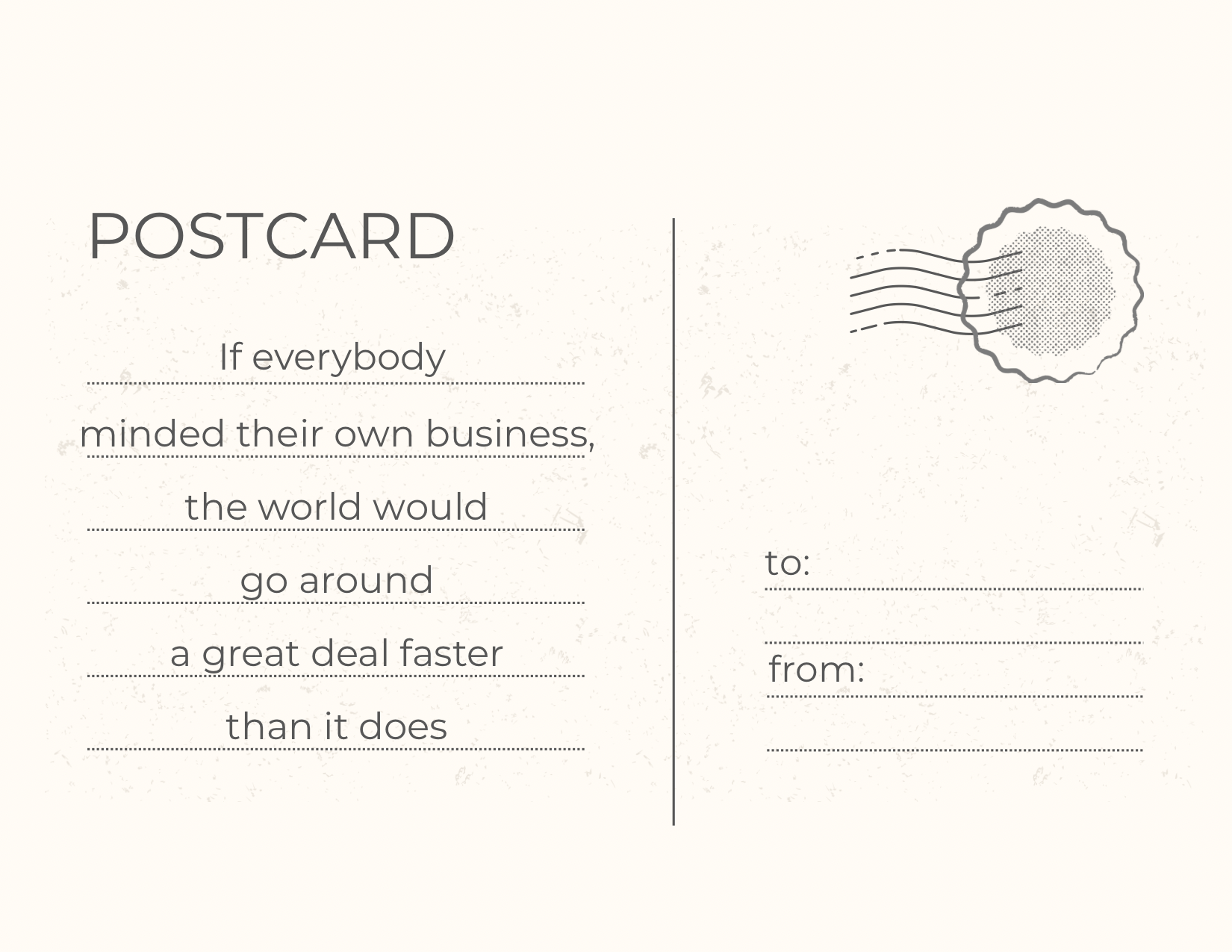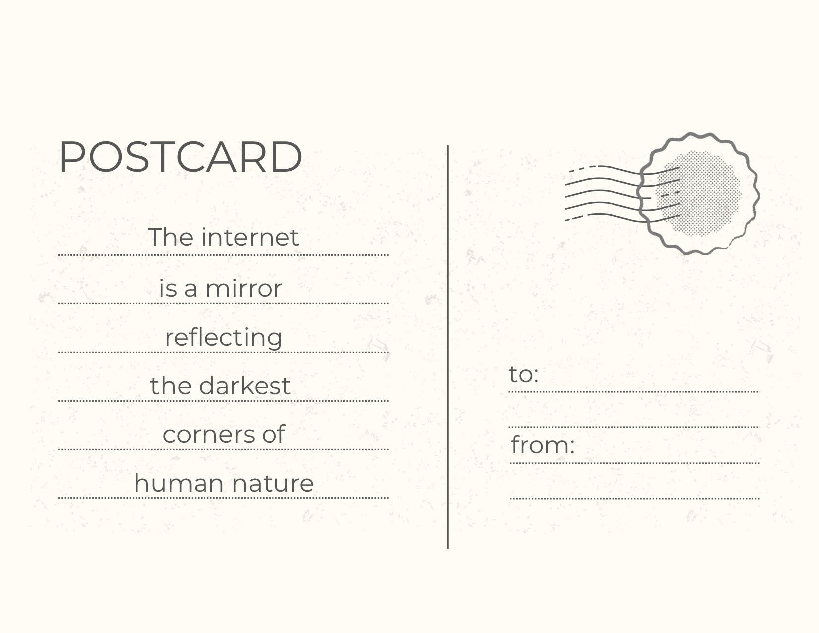 This postcard reflects that duality by dividing the image into two distinct worlds. The left side is pale, symbolizing a monotonous life that no longer brings joy — days pass without change, and everything feels the same. The right side, however, is brighter and filled with color. It represents the path of those who push themselves toward new goals, stepping into a world where more is happening, energy flows, and the joy of living is renewed.